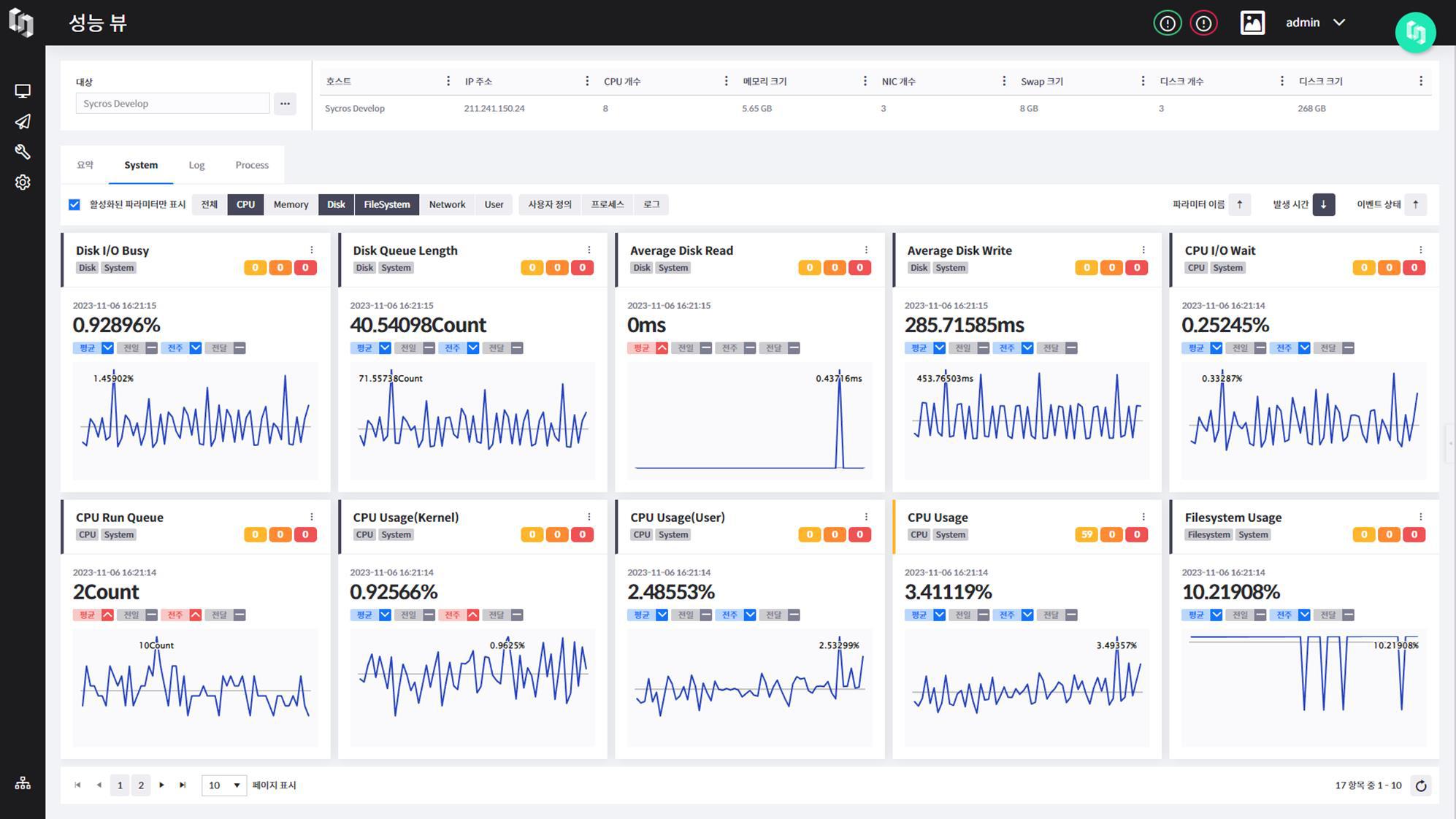 CPU, Memory, Swap Usage, Filesystem, NIC 트래픽, 로그인 사용자등 모니터링